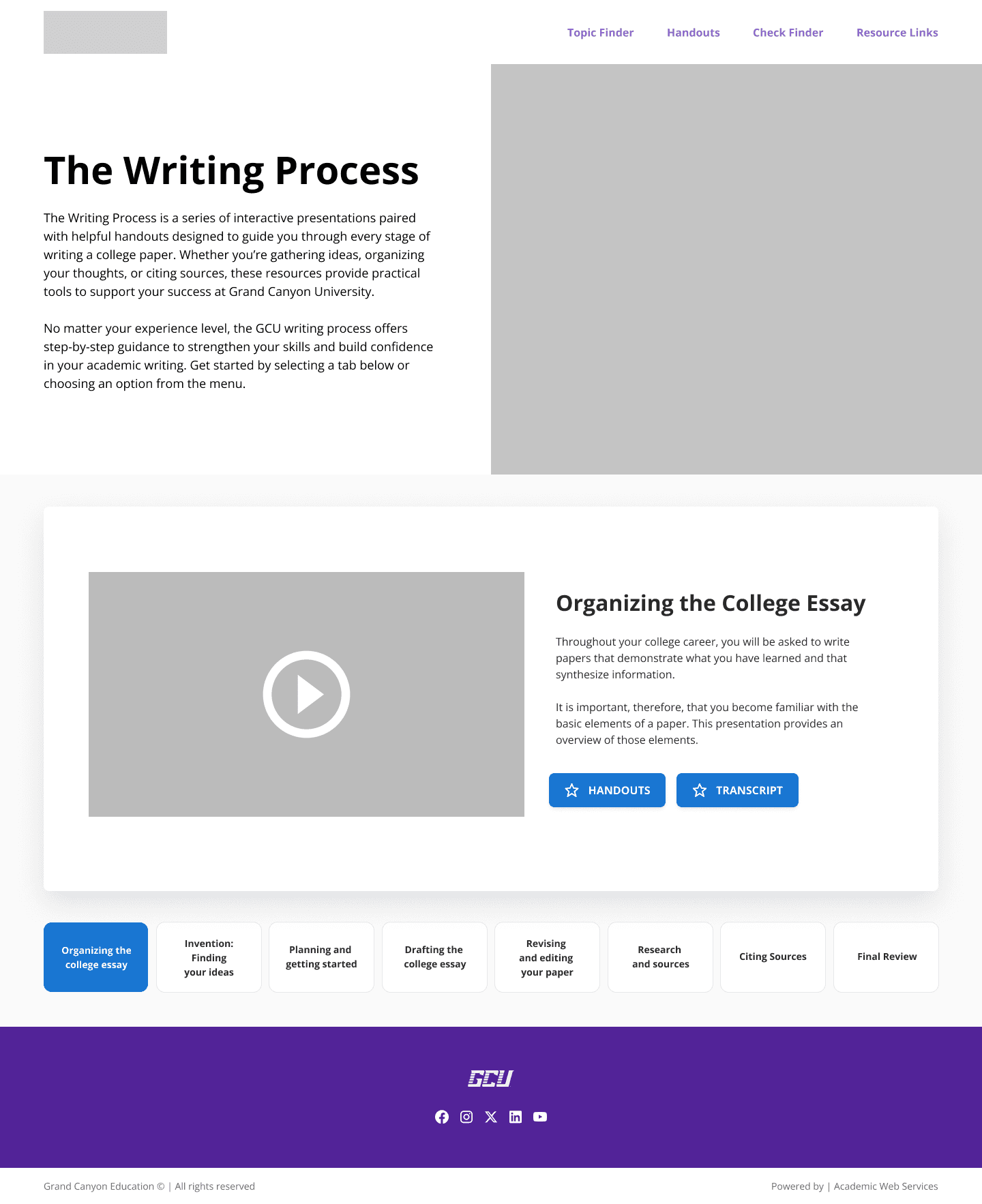 This project is a redesign of an existing student-facing writing resource originally built as a single, media-heavy page. While the content itself was strong, the experience reflected outdated design patterns, with instructional material hidden in navigation menus and users expected to explore and assemble the writing process on their own.